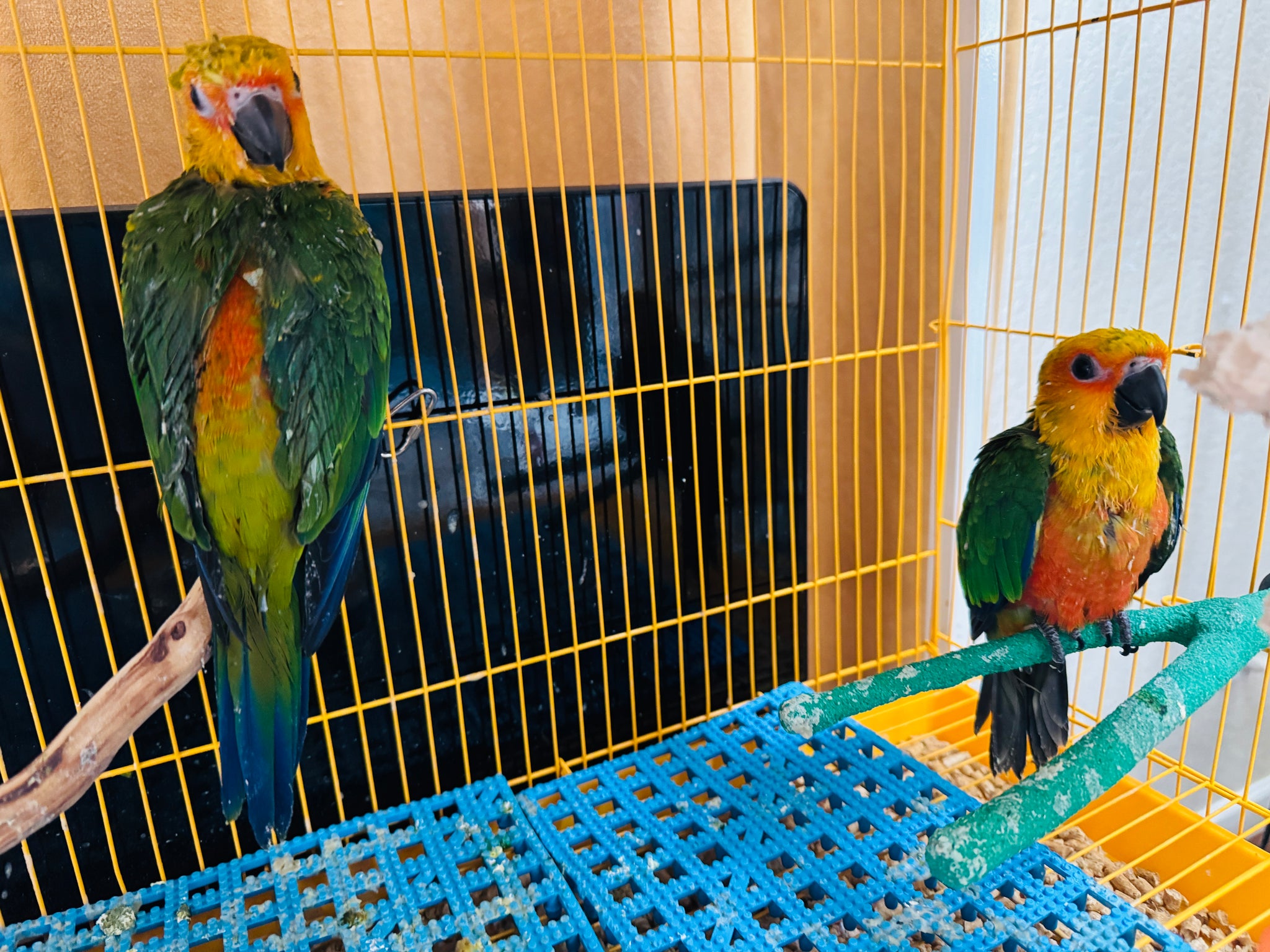Handfeeding two precious little Jenday’s! 💚♥️💛
