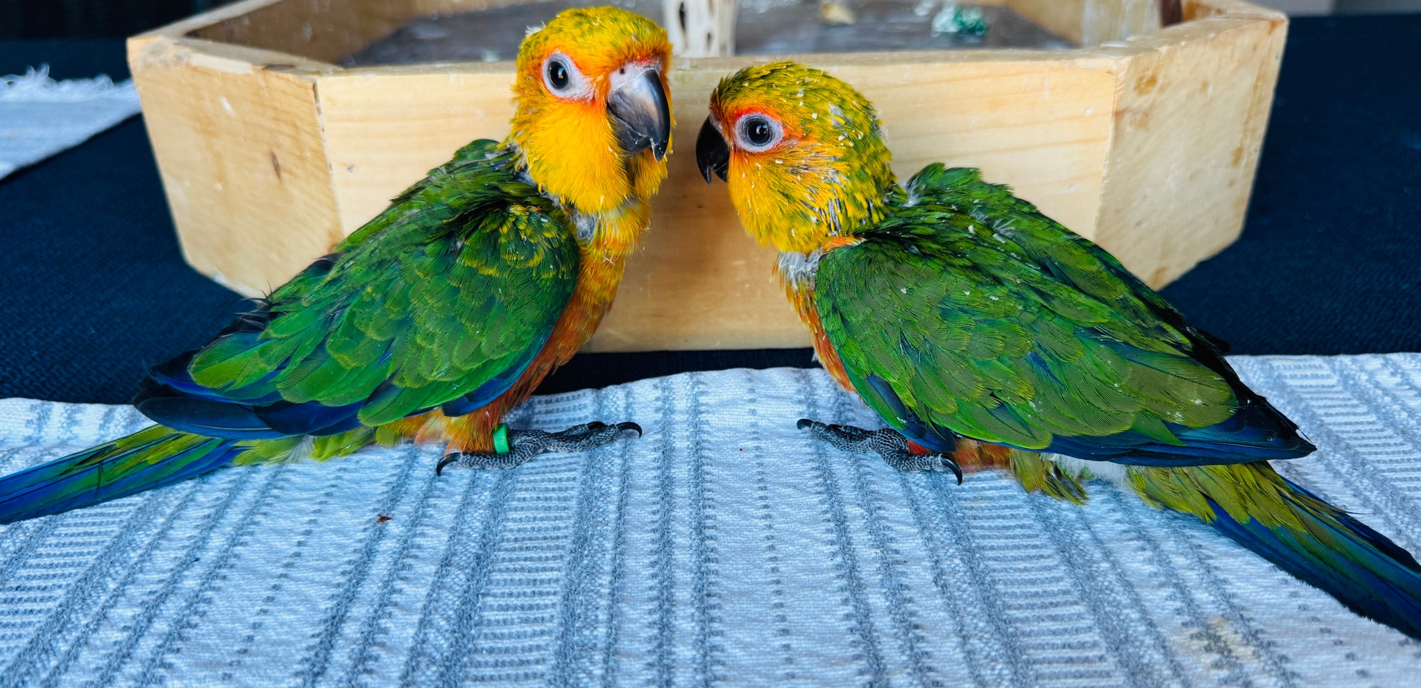 These bright and chirpy Jenday Conures are ready to wing his way into your heart and perch-manently become part of your flock!