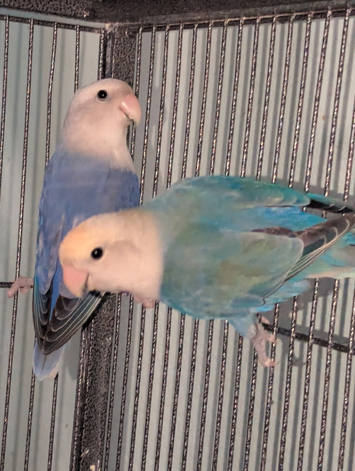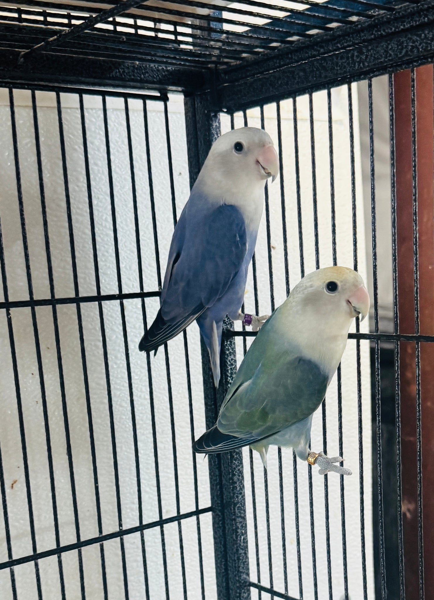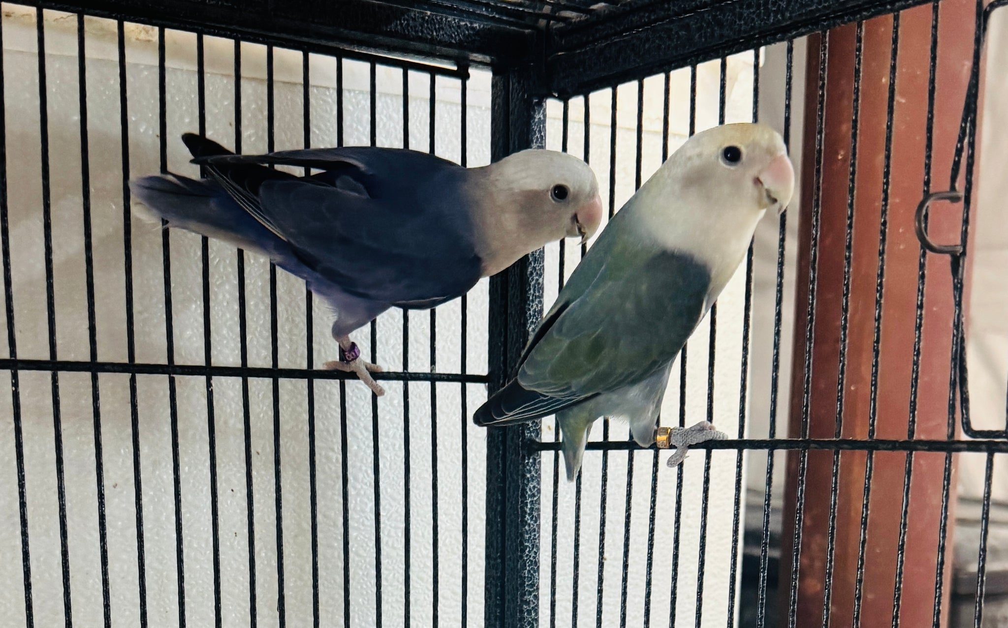 This handsome pair was initially sold as a confirmed male–female breeding pair. DNA testing later revealed that both birds are actually male. They are bonded, will not separate into singles.