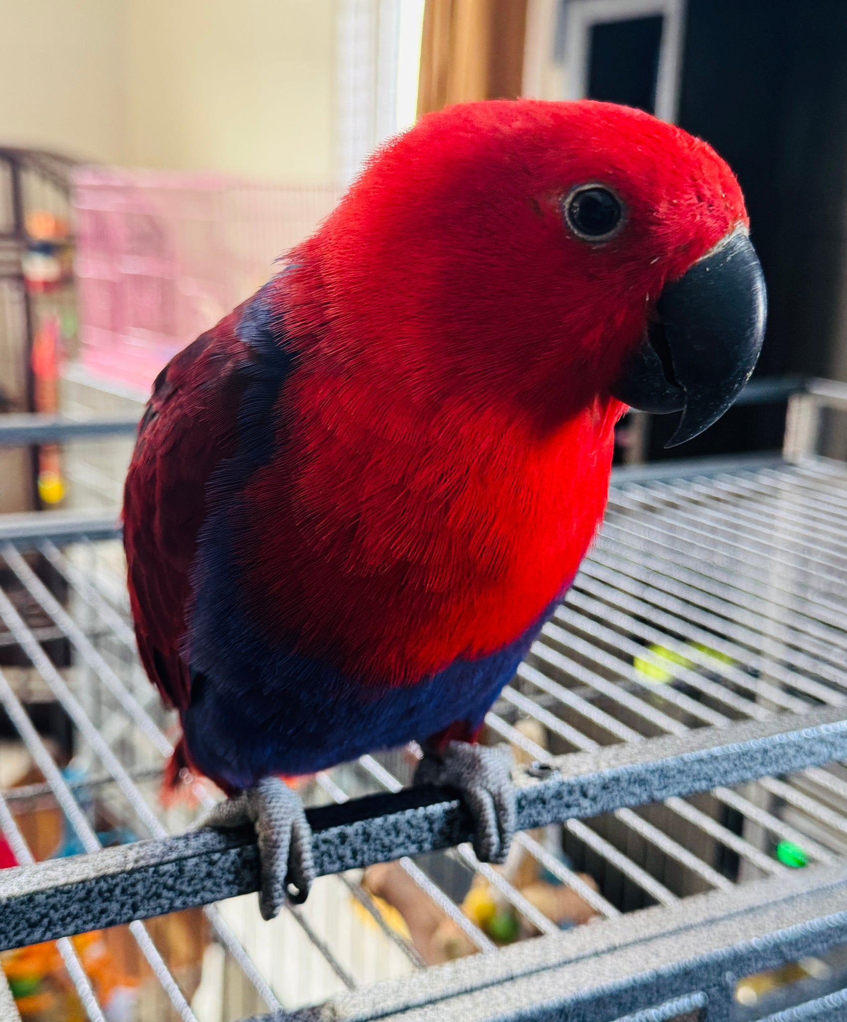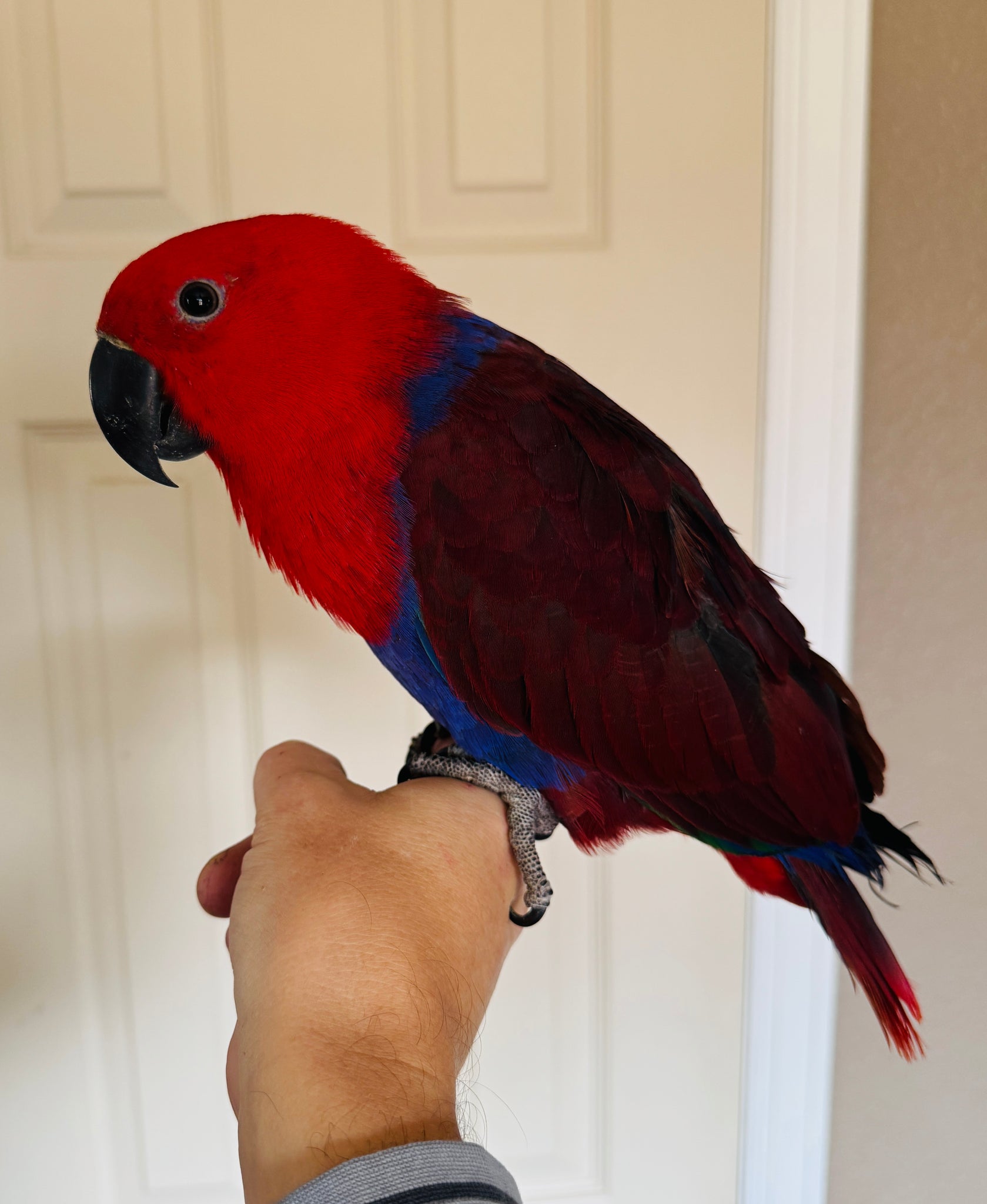 This gorgeous girlie is a 9-10 month old female Solomon Island Eclectus, family raised and hand tame. Healthy, social, young parrot ready to join a loving home. ❤️💙💜